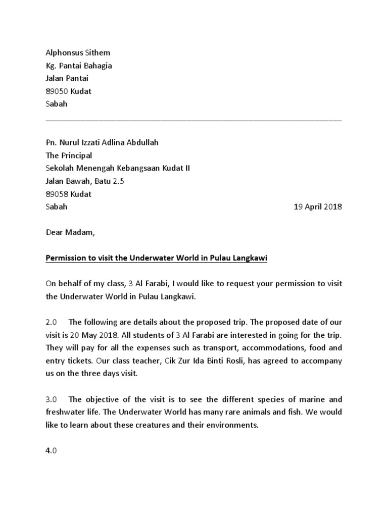 Sample Formal Letter Asking For Permission Spm Cake Ideas