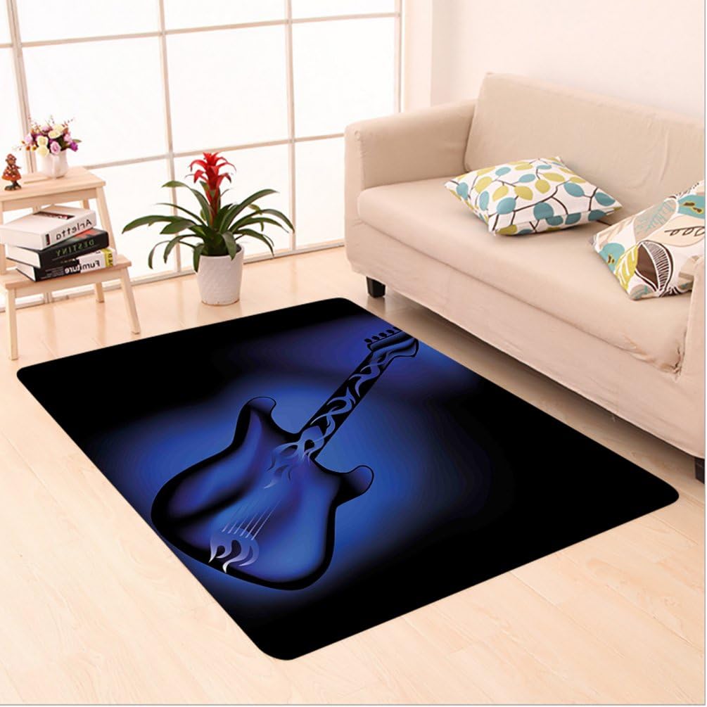 Nalahome Custom Carpet C Electric Guitar Bass In Dark Tones Rock And Roll Pop Themed Oldies Instrument Design Navy Blue Area Rugs For Living Dining Room Bedroom Hallway Office Carpet 5 X