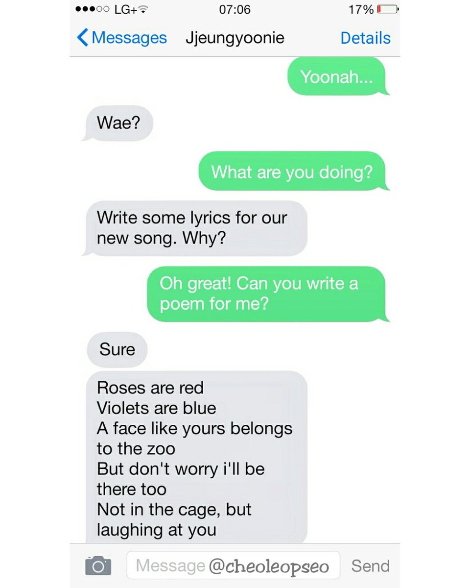 Roses Are Red Violets Are Blue The Face Like Yours Belongs To Zoo Don T Be Sad I Ll Be There Too Not In The Cage But Laughing At You Dedicate This Song To