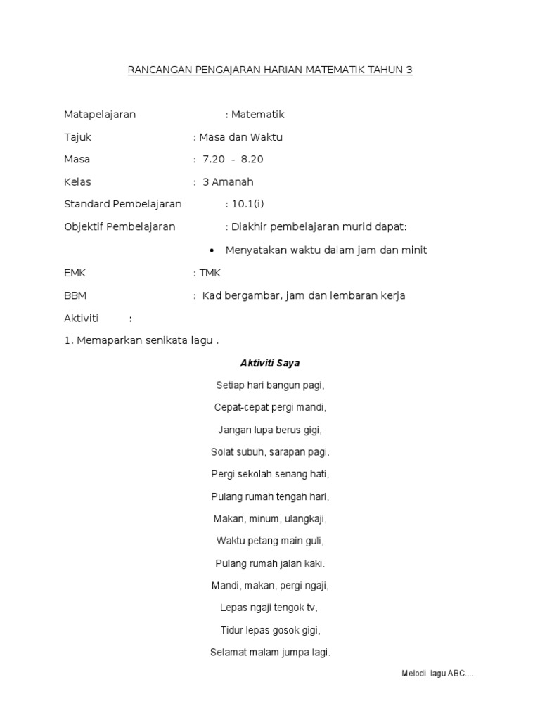 118547791 Contoh Rph Matematik Tahun 3 Kssr