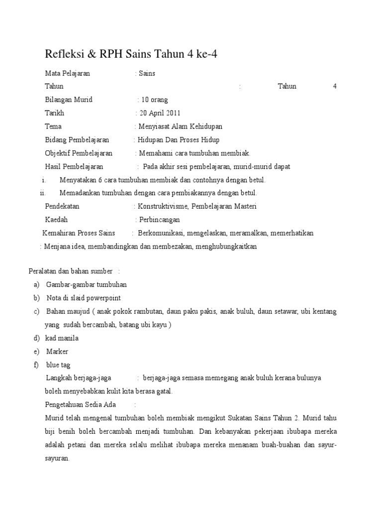 Contoh Rancangan Pengajaran Tahun 3 Dst