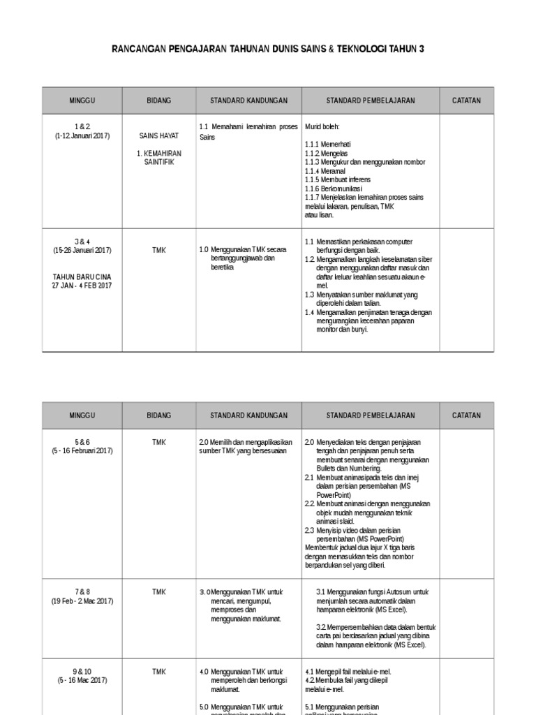 Rancangan Pengajaran Tahunan Docx Document