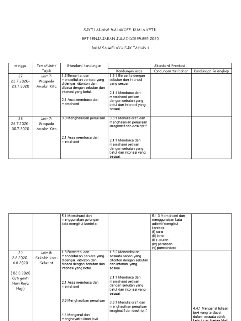 Muat Turun Rancangan Pengajaran Tahun Penjajaran Tahun 2020 Minggu 27 48 Cikgu Share
