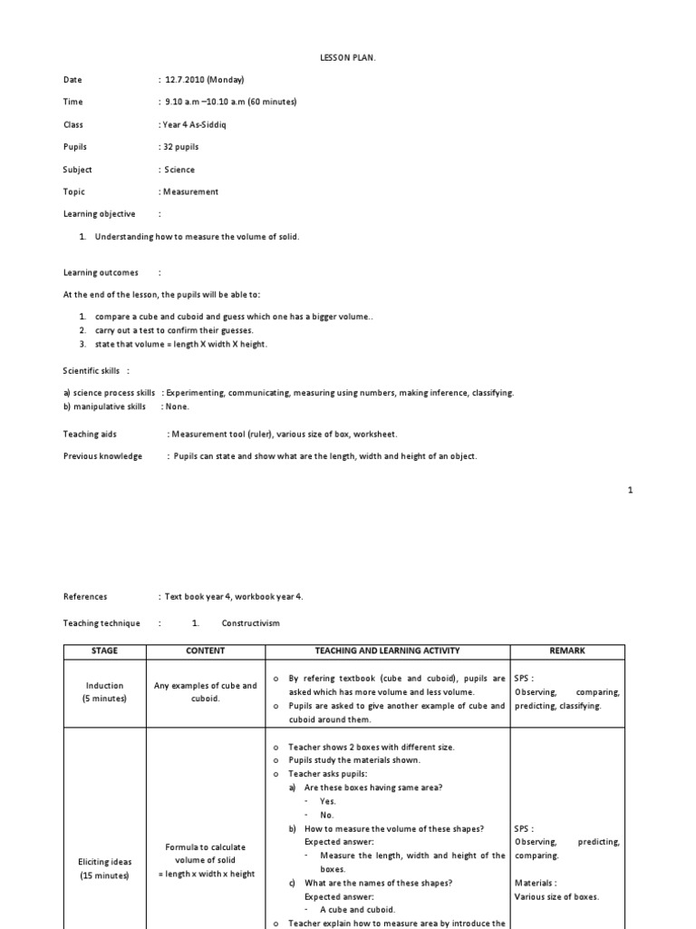 Rancangan Pengajaran Harian Contoh Sains Tahun 2 Tarikh 20 10 2011 Sains Tarikh Orang