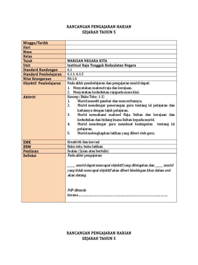 Rph Sejarah Tahun5 Kp Rancangan Pengajaran Harian Sejarah Mata Pelajaran Dan Kelas Sejarah Tahun 5 Tema Tajuk Tema Identiti Negara Kita Tajuk 9 Bunga Course Hero