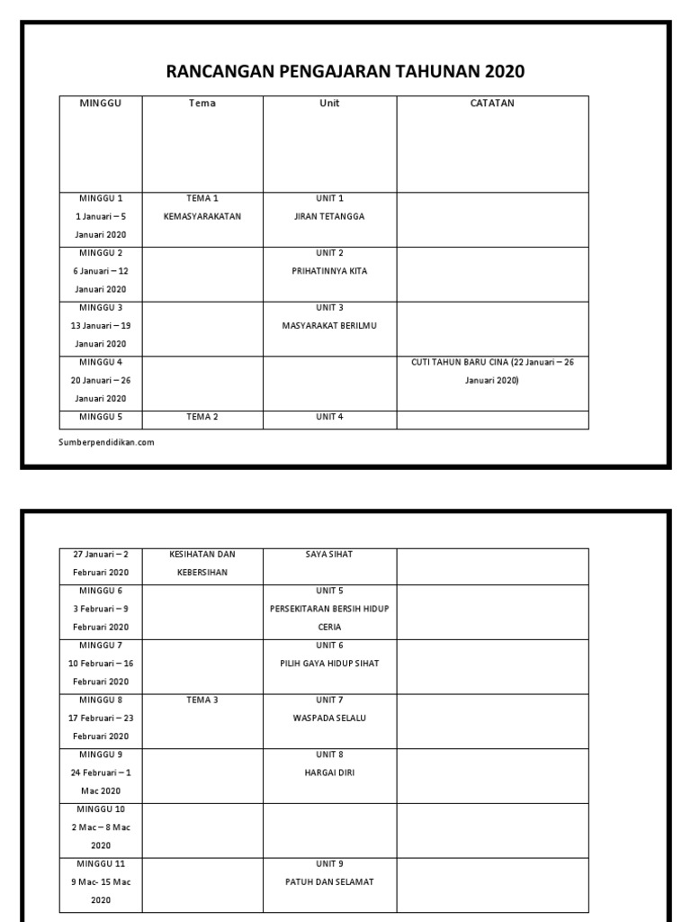 Rpt 2020 Rancangan Pengajaran Tahunan Sekolah Rendah Semua Mp