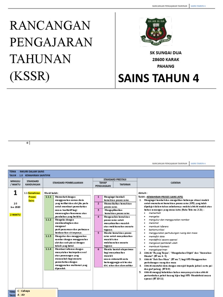 Koleksi Rancangan Pengajaran Tahunan Rpt 2019 Tahun 4 Kssr Sumber Pendidikan