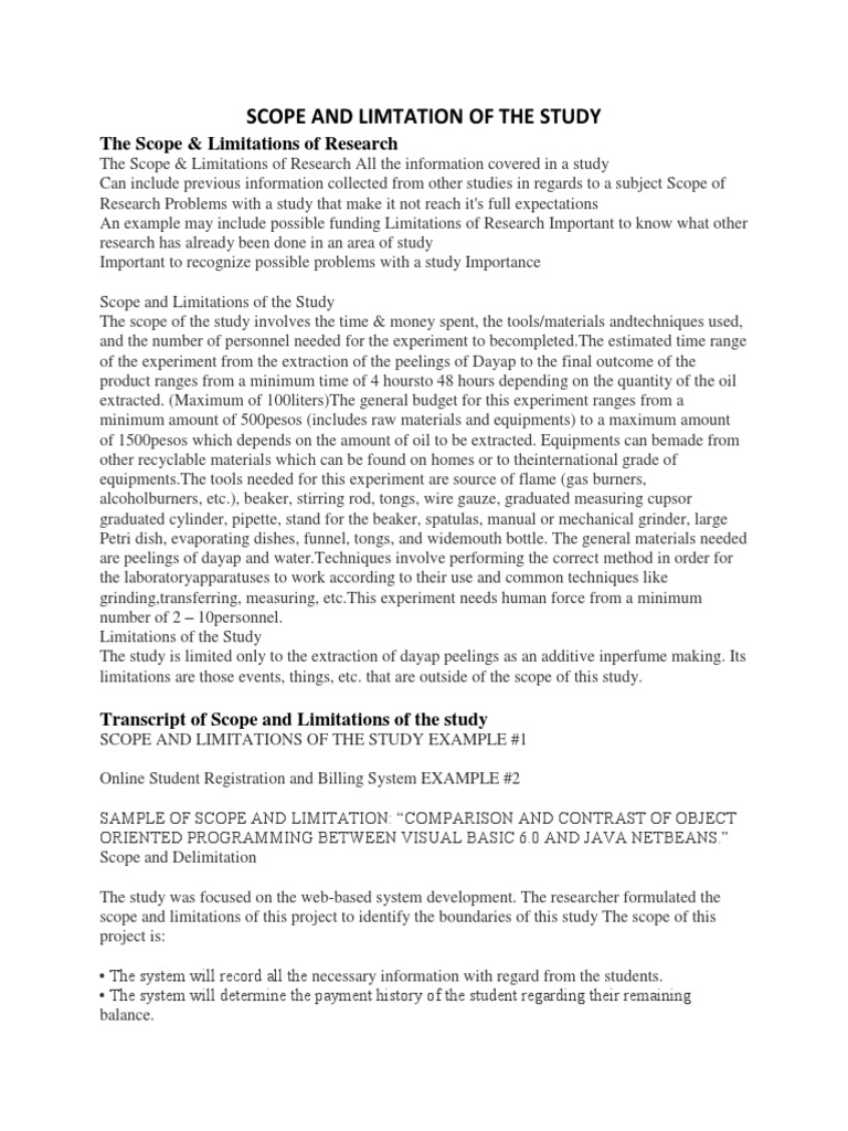 Scope And Limitation Of The Study Sample Thesis Proposal