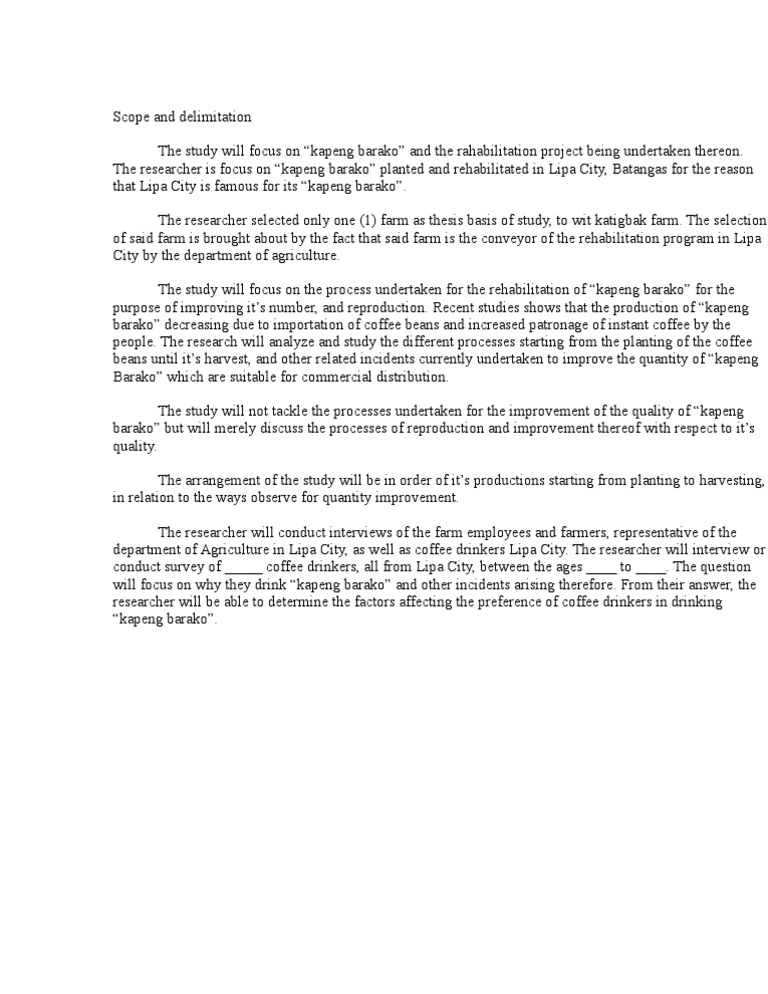 Scope And Delimitation The Study Will Focus On Kapeng Barako Coffee Food Industry