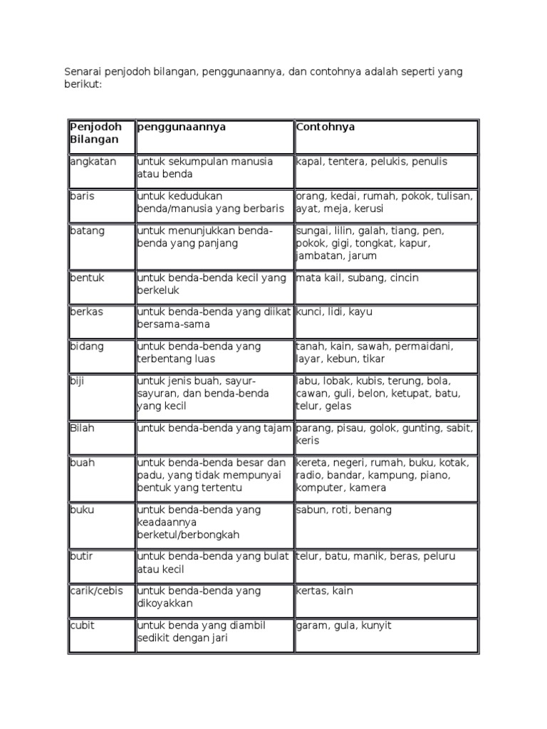 Berikut Ialah Senarai Penjodoh Bilangan Docx