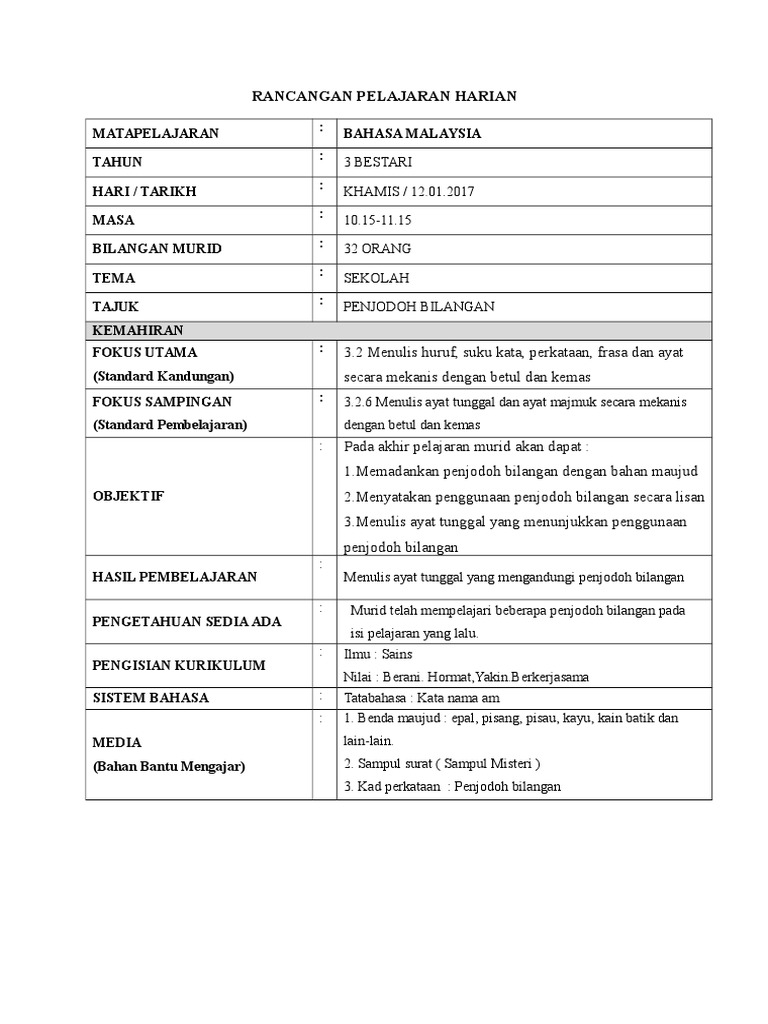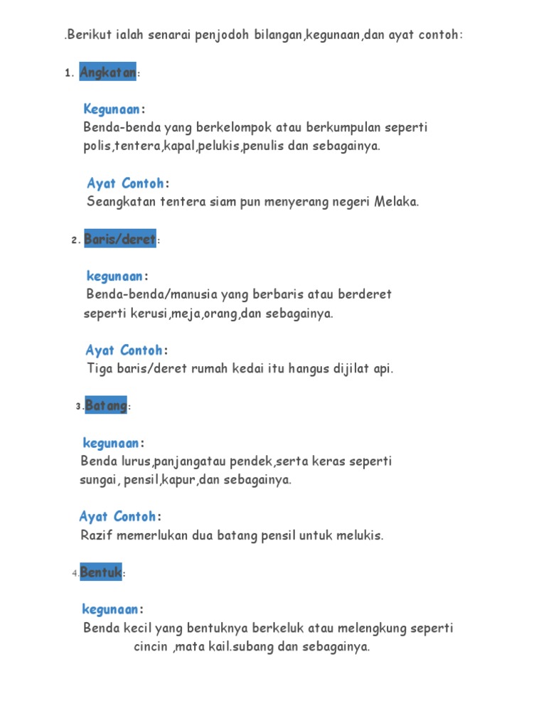 Penjodoh Bilangan Penjodoh Bilangan Digunakan Sebelum Sate Latihan 1 Isi Tempat Kosong Dengan Pdf Document