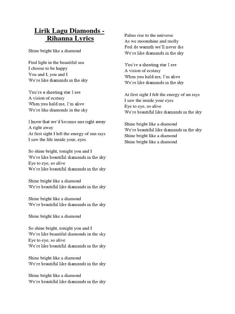 Rihana Shine Bright Like A Diamond Lyrics Shine Bright Like A Diamond Shine Bright Diamonds Lyrics