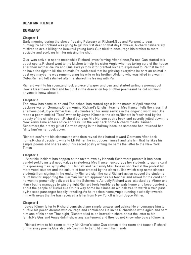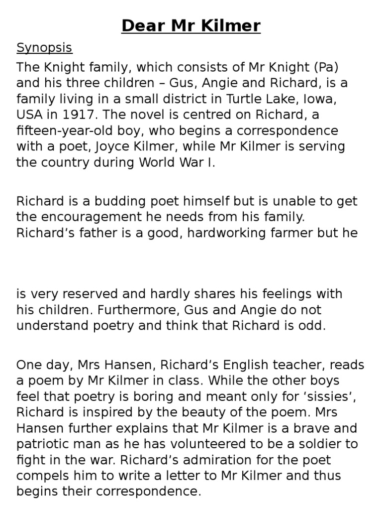 Dear Mr Kilmer Summary Poetry Fiction Literature