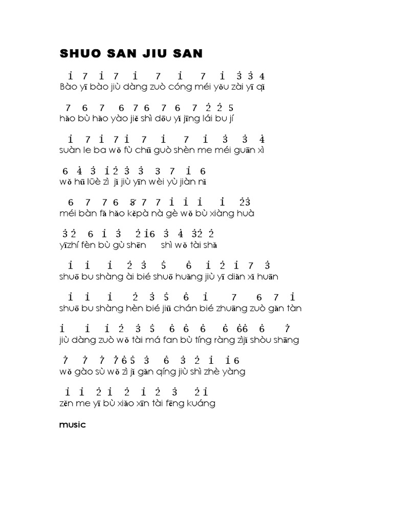 Shuo San Jiu San Lyrics
