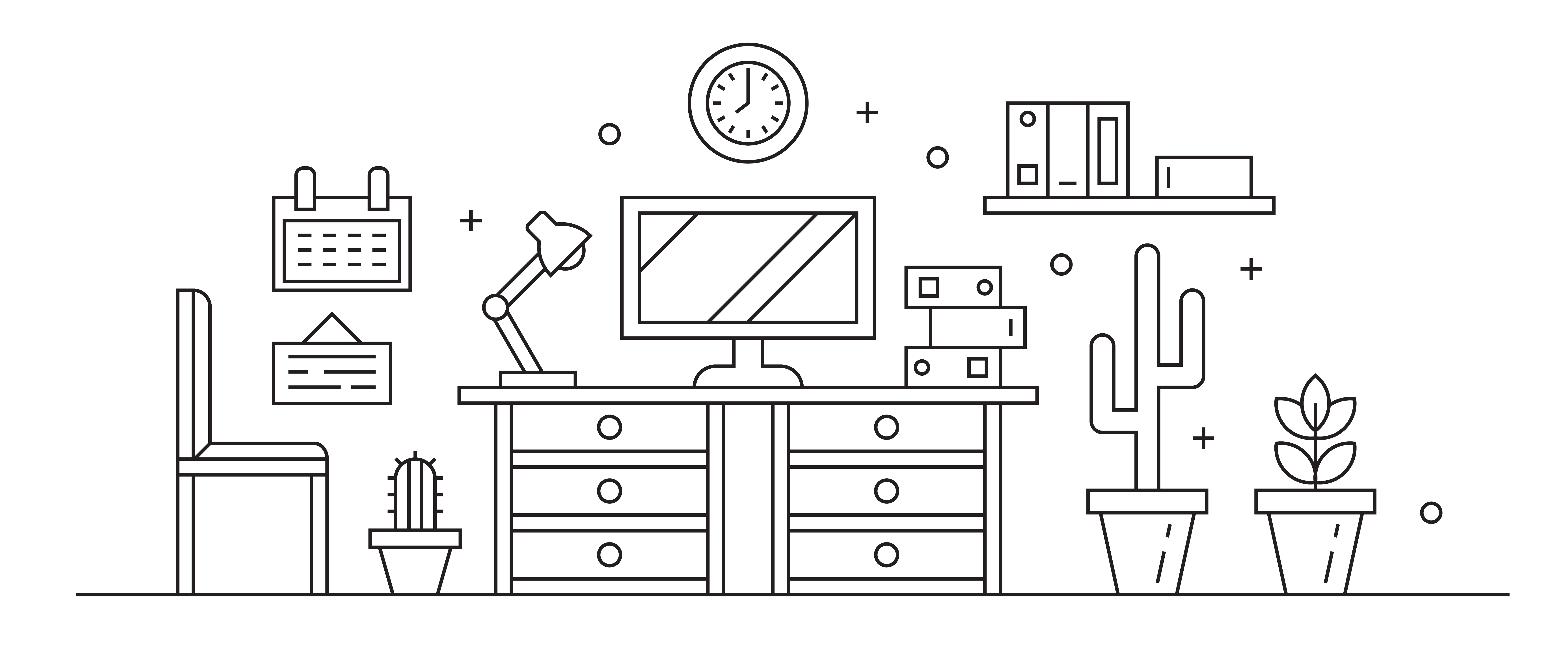 Workplace Line Art Black And White Simple Thin Line Design Vector Workspace Or Private Room Concept And Interiors Download Free Vectors Clipart Graphics Vector Art
