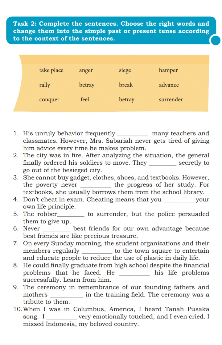 Complete The Sentences Choose The Right Words And Change Them Into The Simple Past Or Present Tense According To The Context Of The Sentences