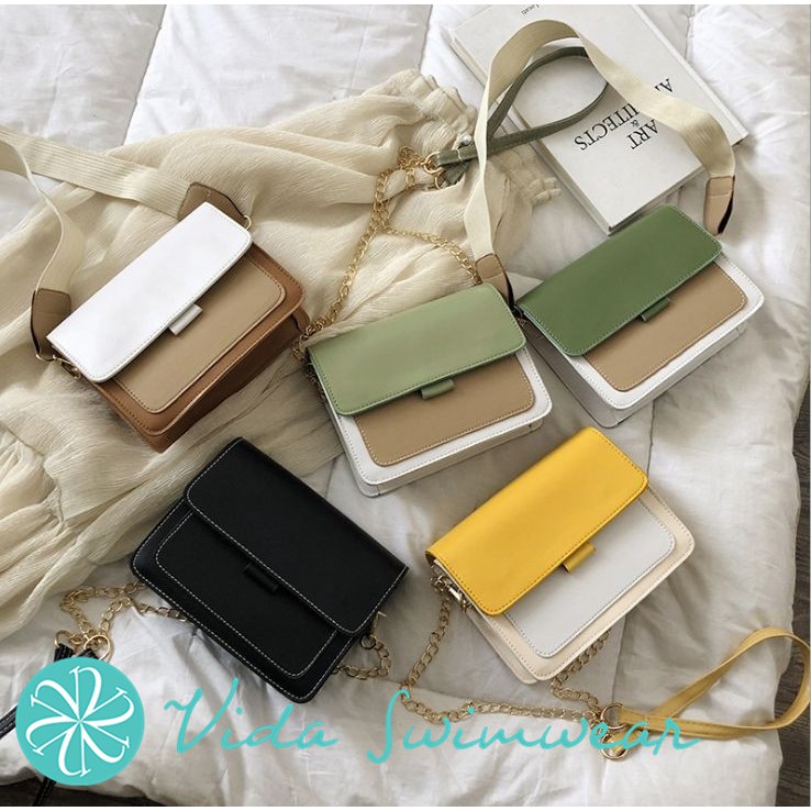 Korean Sling Bag Women Color Block Sling Bag With Metal Chain And Strap Crossbody Bag Shoulder Bag Shopee Philippines