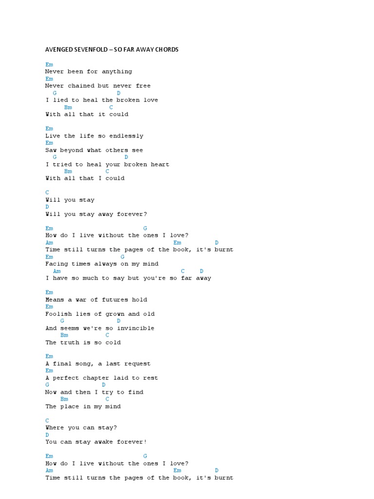 Avenged Sevenfold So Far Away Chords