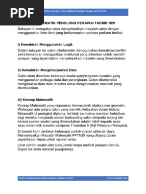 Contoh Soalan Matematik Penolong Pegawai Tadbir N29 V Soalan