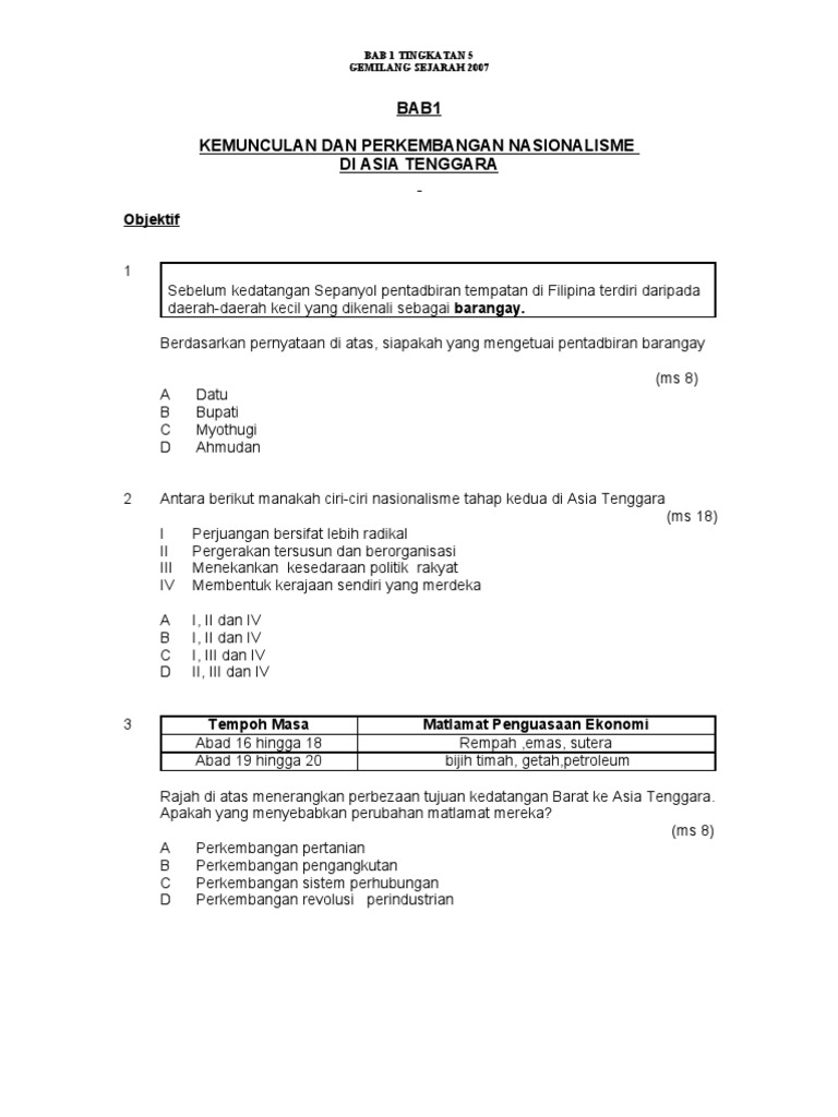Latihan Soalan Esei Tingkatan 5 Bab 1 Latihan Soalan Esei Tingkatan 5 Bab 1 Kemunculan Dan Perkembangan Nasionalisme Di Asia Tenggara 5 A Berdasarkan Pengetahuan