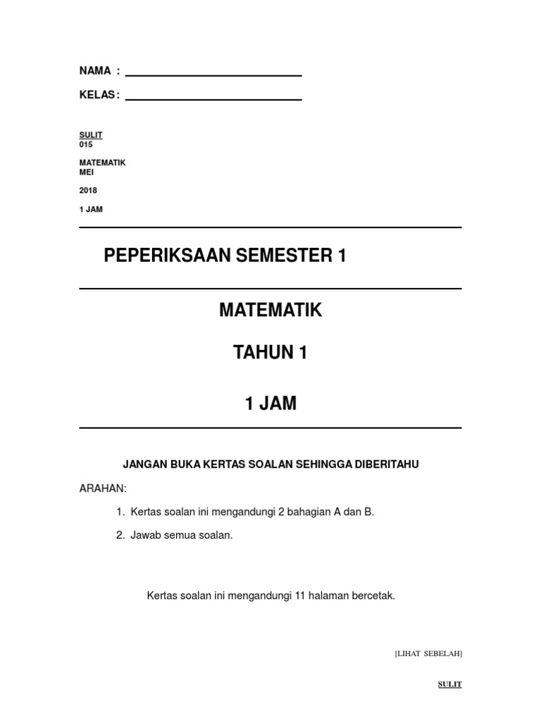 Soalan matematik tahun 1 2018. August 27 2018 cikguiznan 1 comment on koleksi soalan sebenar upsr 2017 kertas 1 kertas 2 peperiksaan atau ujian adalah kayu ukur bagi menyukat sejauh manakah keberkesanan pengajaran dan pembelajaran. Peperiksaan akhir tahun akan dilangsungkan di seluruh sekolah setiap hujung tahun akhir semesta. Untuk pengetahuan koleksi bank soalan ini akan dikemaskini dan ditambah dari semasa ke semasa. Seperti yang kita sedia maklum peperiksaan pertengahan tahun bagi tahun 2018 bakal dilaksanakan di semua sekolah iaitu pada bulan mei.
