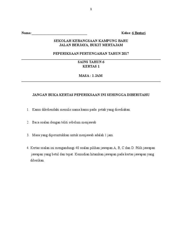 Soalan Pksr 1 Sains Tahun 5 Kssr 16 Descargar Cute766