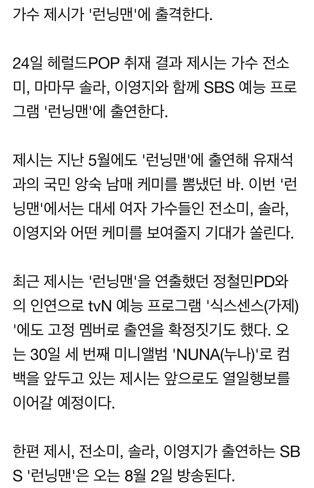 Story Kpop On Twitter Singer Jessi Jeon Somi Mamamoo Solar And Lee Youngji Will Be The Next Guest On Sbs Running Man On August 2 Knetz React Https T Co Azsztjohqd Https T Co 2prig87i0p