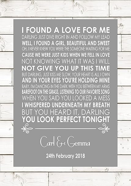 Perfect Ed Sheeran Lyrics Unframed Print A4 21cm X 29 7cm Amazon Co Uk Kitchen Home