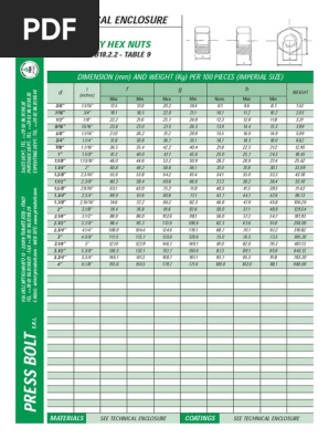 Standard Size Bolt And Nut Dimensions Table Pdf