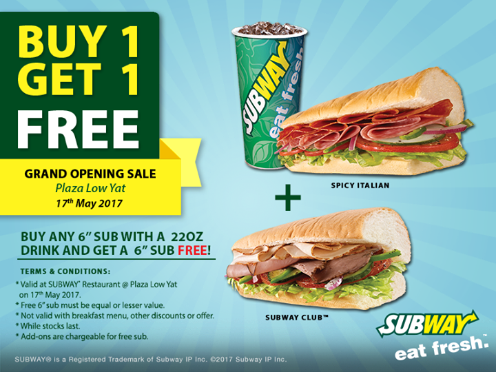 Subway Buy 1 Free 1 Grand Opening Promotions 8th Feb 2018 Contests Events Malaysia