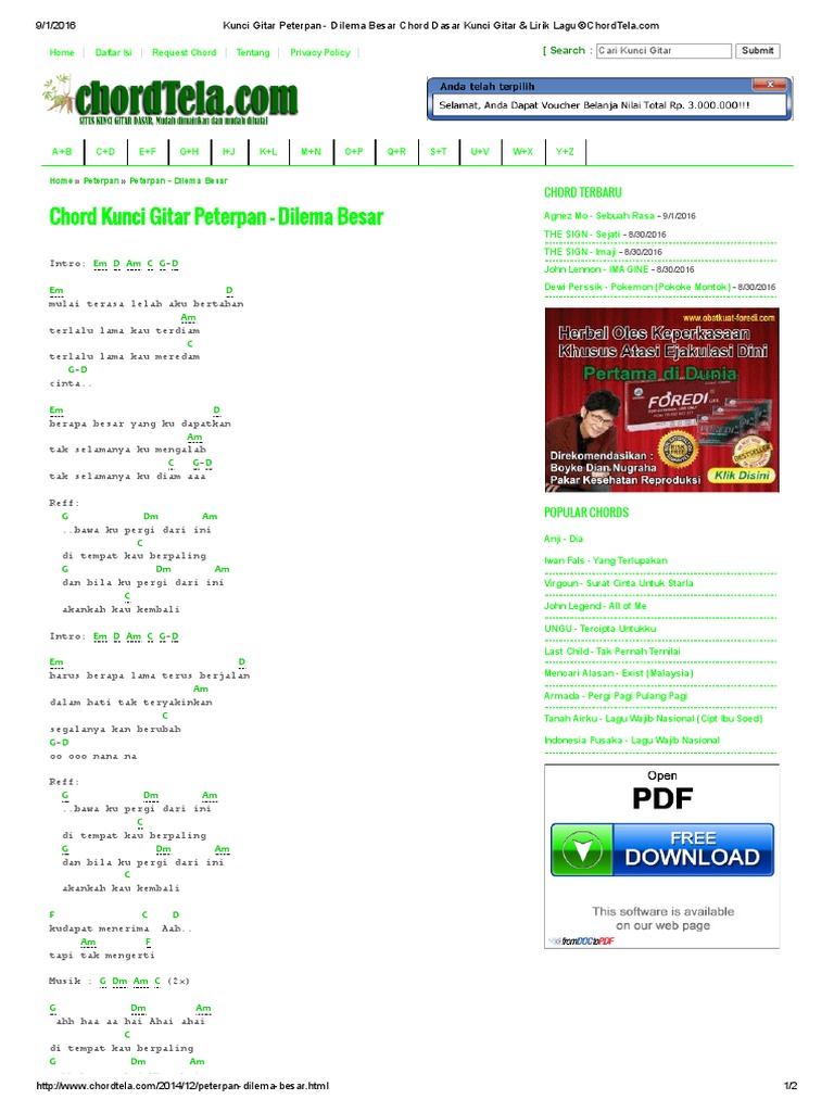 Chord Kunci Gitar Peterpan Dilema Besar Emdamcgd Em D Am C Gd