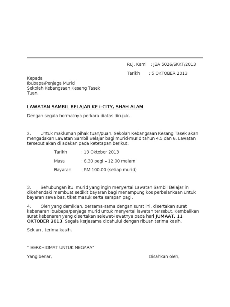 Contoh Surat Kebenaran Lawatan Ke Luar Negara Contoh Cute766