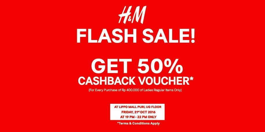 H M Indonesia On Twitter H M Flash Sale At Lippomallpuri Today Only From 7pm 10pm Get 50 Cashback Voucher T C Apply Visit H M Lippomallpuri Now Https T Co Yj2bbo7bvs